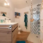 The beachfront Casa Cueva Apartment is equipped with a bathroom that features towels.
